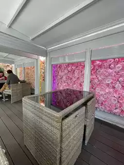 They have a great place to take pictures and get likes, which is a few beautiful flower walls. However, the restaurant is outdoors, no air conditioning, and when we went there was a lot of sunshine and it would be relatively hot.