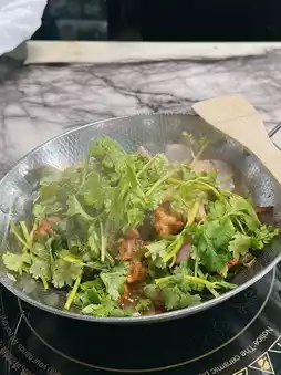 There are several types of chicken pots to choose from. The fish maw chicken pot is enough for two people to share🐔Added fresh chicken parts and a lot of onions🧅coriander🌱The taste is not spicy but also delicious. After finishing the chicken pot, the waiter will immediately give you a fresh and sweet coconut chicken soup base. Beat the side stove 😍