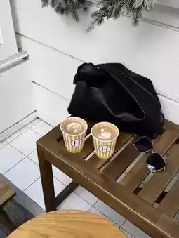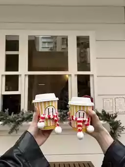 The coffee cup is tied with a Christmas scarf in the cold weather, so cute🧣