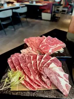 Meat American beef tenderloin fat distribution evenly. Black pork belly is a key recommendation, moderately fat and lean, the soup is fat but not greasy. The American ribeye and grain-fed beef shoulder are also good, and the special black pork is fresh.
