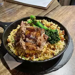 The duck leg has thin skin and chewy meat, with soft and tender fat that adds a salty and oily flavor. The oil seeps into the rice, making it fragrant and not dry, with a hint of lime aroma.