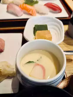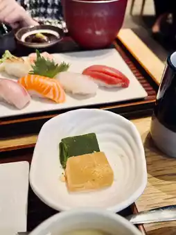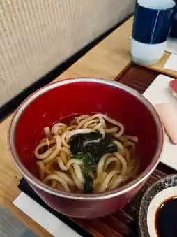 The set meal is also quite rich, including salad, chawanmushi, miso soup, appetizers, and dessert. The Inaniwa-style udon has a chewy texture and a refreshing broth, perfectly complementing the sushi, allowing one to experience the essence of Japanese cuisine ☺️.
