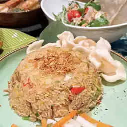 The fried rice is a large portion, fried dry enough, and plenty of ingredients, especially the duck, which is well seasoned and more tasty with a little spiciness