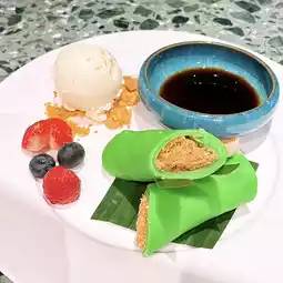Banana coconut rolls served quite attractively, is a dessert, I usually rarely eat, eat very fragrant coconut flavour, with a faint pandan fragrance, in addition can be served with a vanilla ice cream, taste quite special
