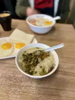 We ordered "Pickled mustard greens, shredded pork, rice noodles with sunny-side-up egg"