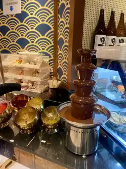 There are also desserts, hot soup, coffee and tea, a small selection of fried foods and a chocolate fountain.
