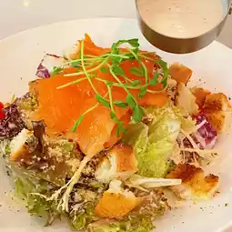 The salad vegetables were fresh and crisp, the smoked salmon had many slices and was served with biscuit crumbs.