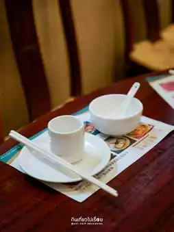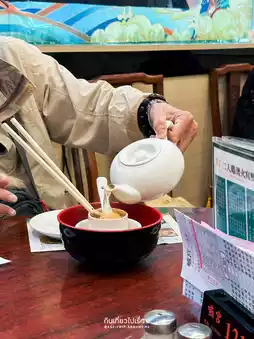 Something that is normal for people here is probably washing spoons and chopsticks. I saw an uncle sitting at the same table washing both hot water and tea. Thais like us were shocked by the hygiene.