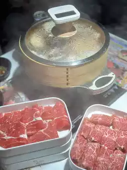 Unlimited Wagyu set starts with chicken pot🥘 then served with steamed seafood🦐 Then comes the hot pot section, Australian M4-M5 Wagyu is really good, surprisingly the top beef (less fat) and pork are great🤤