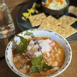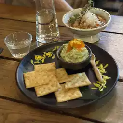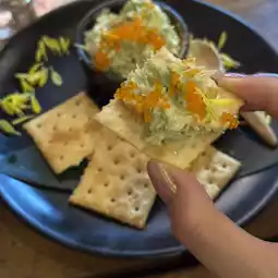 Avocado, cream, crab meat mixed together, and topped with soda biscuits 🍪 together, delicious 😚!