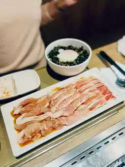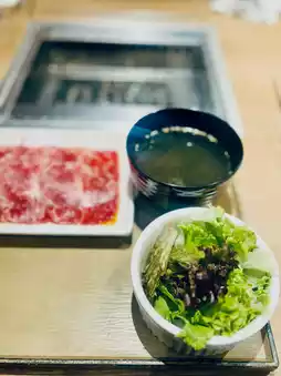 We ordered the short ribs and shank set🥩 (100g $118) and the three-piece set (pork belly, pork neck, chicken thigh) (200g $88), and also added a single beef tongue (100g $75). The set also includes rice, miso soup, and kimchi or salad.