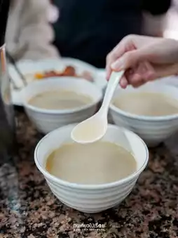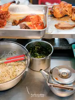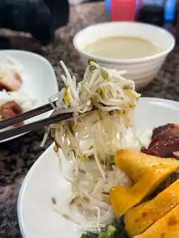 This is the most important and delicious. In the dish that I ordered, roast pork + chicken, the seller added fried spring onions in oil. It's really good. And every dish comes with fried bean sprouts. Let's say it's a meal for lunch, but it will fill you up until 8 pm. Or if you don't want to eat too much You can order as a side dish and order rice separately, sharing between two or three people like this.
