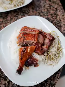 In terms of taste, I think it's really good. The rice is a bit oily, but not as good as our local chicken rice. The chicken is free-range chicken. It's delicious. The duck is okay, the skin is crispy and the pieces are very big. The roast pork is also good. There is a little fat in it. It's cut into thick pieces, just like Hong Kong.