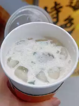 Purchase any food and drink to get $ 5 off 😬 Green tea base with slightly sweet aroma with a light jasmine aroma Added green tea flavored crystal gelatin is very tasty