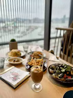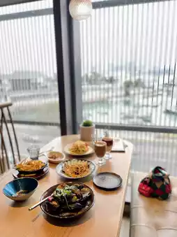 The Japanese-style Cafe☕️ is dominated by light wood colors. Its spiral staircases, trees and other decorations are full of fashion. This time I chose to sit by the window. The whole meal was accompanied by the sea view. The Japanese and Western food was exquisite and generous, and the atmosphere was quite comfortable.