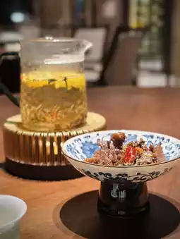 ☁️ Chinese cuisine must have tea, here you can choose tea is very special, we chose chrysanthemum and wormwood tea, the table tea set is very beautiful, and added a small candle stove to help you hot tea. Their dishes are all very exquisitely presented and full of ceremony.