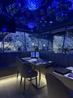 Today, I came to this popular starry sky restaurant with friends to celebrate a birthday. As soon as we entered, we were pleasantly surprised. The place is surrounded by seven to eight glowing 3D starry sky tents, which are beautiful and dreamy. The blue-black sky is adorned with starry lights, complemented by the venue's polar lighting effects and starry sky music, making it romantic and atmospheric.