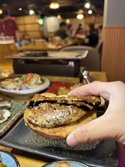 The chicken sticks are filled with minced chicken cartilage, which makes them more tender and chewy. Served with sea salt and egg yolk, very juicy and tasty, a must-order!