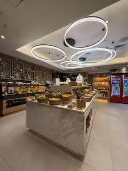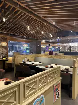 The restaurant features Japanese-style wooden decor, with spacious and comfortable seating. It's newly opened, very clean, and beautifully designed.