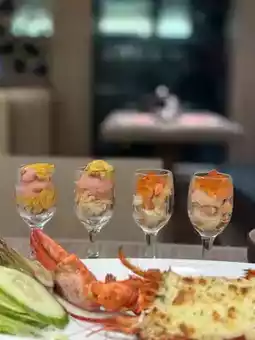 Sashimi platter (sauerkraut, herring, salmon, Norwegian salmon, swordfish fillet, sweet shrimp, Hokkaido scallops and Argentinian red shrimp)