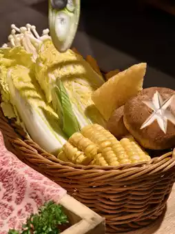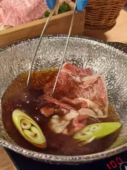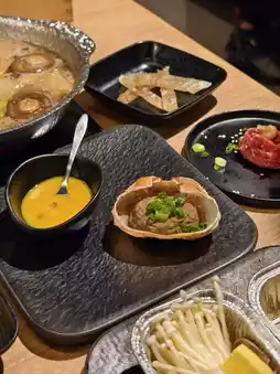 After we took photos of the platter, the waiter cooked 2 slices of beef shoulder and let us dip them in raw eggs🥚 to eat. The meat is so tender. After that, the waiter carefully placed various vegetables 🥬 and 2 other slices of beef shoulder in the pot. Once the food is cooked, we can enjoy it slowly or add our favorite ingredients. The quality of the beef shoulder was really high, and it felt like we could easily make our money back by eating a few more slices, so we ordered a few more. The next serving of meat was also large and marbling-filled.