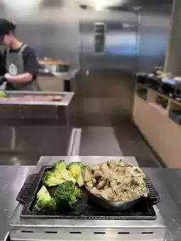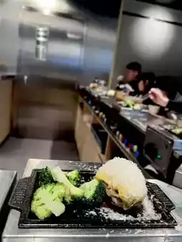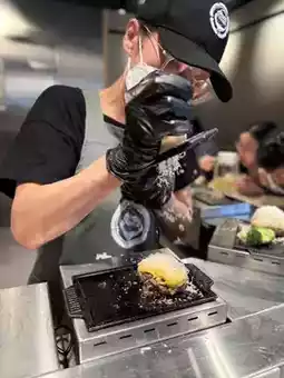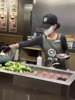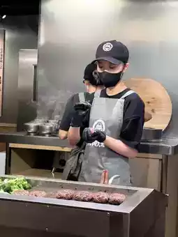 Each seat has a small iron plate in front of it, so you can cook the hamburger steak to your liking. The original flavor steak is quite thick, and I personally think adding a little salt is okay. The cheese flavor is richer, and cheese lovers will find it great. The mushroom flavor has a hint of garlic, which is quite aromatic.