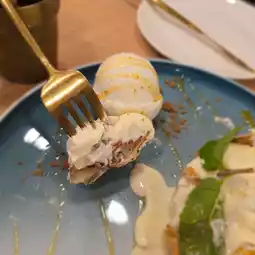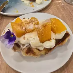Mango Sea Salt Cheese Milk Cake Marshmallow Horn Waffle with Coconut Ice Cream $108