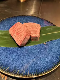 The chef helped me arrange five percent cooked, which I found very mushy, very good cooking, and different sauces and Wasabi to go with this wagyu beef, great satisfaction.