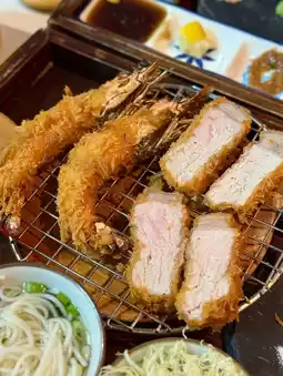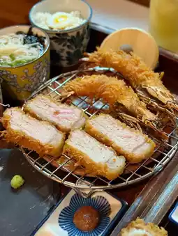 All fried to order, very fresh! The fried batter is very crispy, I appreciate the fact that it is not greasy at all 😍 The pork chop is soft and juicy, the fresh tiger prawns are big, and the meat is very bouncy.