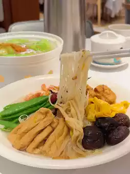 The thin noodle line is smooth and refreshing. There are many ingredients, including fresh shrimp, winter mushrooms, bean sprouts, egg strips and other ingredients. The taste is rich.