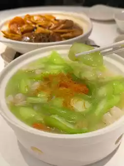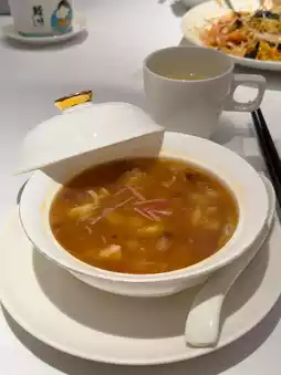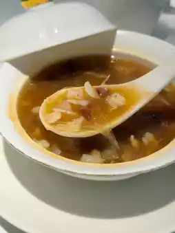The portion of the King Shark Fin Soup is full, lots of seafood pieces, moderately thick, and tastes fresh.