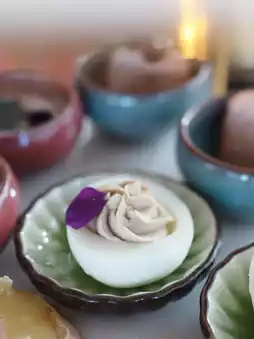 🍯 Stuffed eggs with goose liver sauce with honey sauce