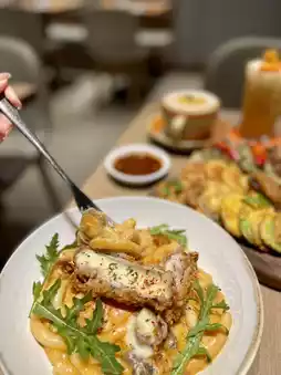 Even if you come to eat in the afternoon, the menu is very rich. New Year ingredients are incorporated into traditional dishes, and the name of each dish is festive and full of New Year atmosphere. The taste is also delicious, and some are even more surprising ❤️. I had a great time eating with my family and friends 🥳! The [Rice Roll] has a rich taste, and the addition of abalone makes it even more precious; and the [Korean Pancake] has 5 flavors in one platter. I love the Korean scallion pancake the most, with plenty of scallions, it is fragrant and chewy. 【Rice Cake】Mixed with Mentaiko and butter, it is salty and tasty. The texture is very chewy, and it is fried until crispy and not greasy (fried cheese pork chop). It is delicious!