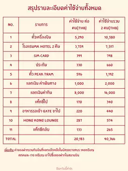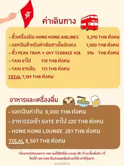 Summary of Hong Kong expenses from 2024 to 2025. Since we went to countdown in Hong Kong, today I will review the total expenses for 3 days and 2 nights. This trip will be a non-superstitious trip. Let's start with the travel expenses. We booked a ticket with Hong Kong Airlines for 5,290 baht. This time, we did not check in our luggage. We exchanged 9,000 baht from Thai baht to HKD, which was around 4.4 THB to 1 HKD at the time. We set aside 1,000 baht for travel expenses. When we arrived, we used the money to rent an Octopus card first. If I remember correctly, the card cost 150 HKD with a 50 HKD deposit that can be exchanged back on the day the card is returned. The easiest place to buy a card is at the airport. After that, we walked to take the A21 bus to get into the city. The cost should be around 34 HKD and our main travel will be walking and taking the MTR, which we think is very cheap compared to the cost of living and income of Hong Kong people. For accommodation, we booked MK Hotel, which cost 3,759 baht per person (the price per night is more expensive than going to Japan 😭). During the time we went, the price of accommodation was higher than usual because it was the end of the year, but we think that if we didn't go during this time, the price would be cheaper. For other miscellaneous expenses, we used MSIG's travel insurance, which was good and had a discount if bought from the website. As for tram tickets, we recommend booking from the app in advance because the price might be better and you won't have to waste time queuing to buy tickets. For food expenses, personally, going for 3 days and 2 nights was just right. My boyfriend and I focused more on drinking beer, which was a bit expensive, at around 100 HKD per glass (400+ baht), except for buying at the supermarket, which was a bit cheaper. However, the food here was a lot and the taste might be a bit too rich, making us full quickly. For those who like pastries, you should like this place because there are quite a lot of bread or flour menus. Overall, the cost was quite within budget because this time we didn't focus on shopping that much because we didn't really have a big budget. For those who love shopping, you might like it. In the next review, we will review the food in Hong Kong and plan a 3-day, 2-night trip. Where should we go? #reviewhongkong #hongkong2024 #reviewhongkong #hongkongplan #hongkongexpenses