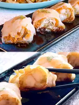 Crispy Laughing Shrimp🍽️. Laughing Shrimp refers to shrimp, as you might have guessed🦐. The rice noodle rolls are wrapped with crispy spring roll skin, making them very crunchy. Each piece contains 2-3 pieces of shrimp, providing a delightful and rich texture.