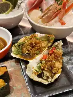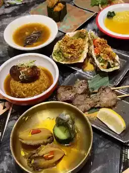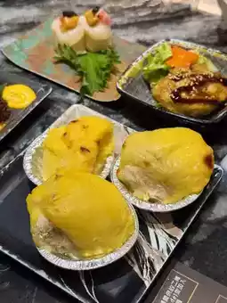 Divided into chilled area and hot food area. The freezing area features frozen seafood, assorted appetizers, salads and fruits. For hot food, there are small cages of shrimp, steamed fish, flower snails, fried food, roasted durian and Chinese dim sum. Guests can also pick up drinks by themselves. The restaurant offers sake and plum wine. Guests can drink a glass of it!