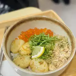 ~ Grilled Scallop Crab Meat Salmon Caviar Don ($118)🍚