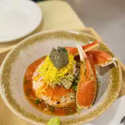 After eating toast, eating tea-soaked rice is quite refreshing🍵, crab meat strips, egg strips and salmon seeds plus crab paste spread all over the rice🤤, there are crab legs for you to peel, great value for money🤑.