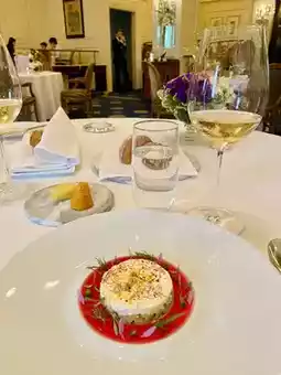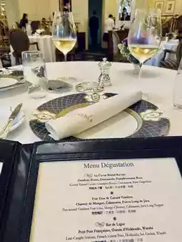 The menu offers a variety of classic French dishes based on fresh seasonal ingredients and paired with exquisite presentation, making each dish both delicious and visually pleasing. The restaurant's wine list is also quite extensive, including a variety of high-quality wines from major French wineries that can perfectly match the dishes.