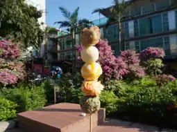 From there, we made our way to Pak Tin Temple, an area full of character, with local restaurants and bustling street vendors. The long queue at one particular stall couldn’t be ignored, so we grabbed skewers of deliciously savory fishballs and meatballs, which more than lived up to the hype. And, of course, the mango mochi here is a must-try—its sweet, tangy flavor was a refreshing delight.