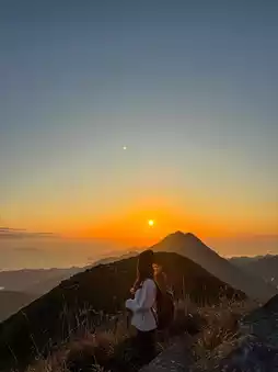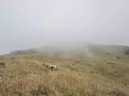 As we reached the summit just as the sun began to set, the landscape was bathed in a soft golden glow. Though the typical sunset views were obscured by the clouds, the scene before us was equally captivating—the swirling mist, the gusting winds, and the calm of the mountain combined to create a moment of pure serenity. It felt as though the true beauty of Sunset Peak was not just in the destination, but in the journey itself.