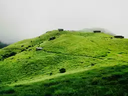The final stretch of the trail was the most exhilarating. As we neared the summit, the path became rockier, with more scattered viewpoints offering fleeting glimpses of the rugged landscape below. The wind picked up as we emerged from the forest, and the golden grasses on the ridge swayed wildly in the gusts. At the crest of the ridge, we discovered a series of weathered stone cabins, adding an element of mystery to the already surreal surroundings.