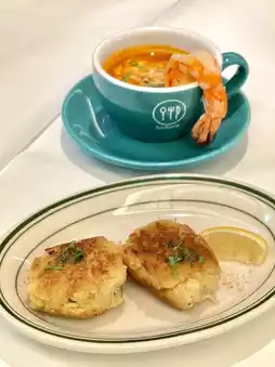 The homemade crab cakes are very filling, with shredded and sweet crab meat and a crispy and delicious outer layer.
