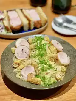 The meat rolls are made with tender and smooth chicken from Hokkaido. The outer layer of the meat rolls is slightly charred, and the meat inside is tender and juicy. The handmade noodles are chewy and springy, and each one is filled with the aroma of kelp and smoked vegetable juice, giving a refreshing feel.
