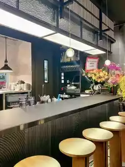 The restaurant specializes in modern Japanese fusion cuisine, using creative seasonal ingredients and unique cooking concepts to give guests a different experience. The decoration is dominated by black, with soft lighting, making the environment comfortable and stylish.