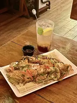 This one was a surprise, the seafood pancakes were golden and crispy, the flour ratio was just right, and there were many ingredients, including: shallots, shrimps, squid, etc., which made people fall in love with them.