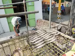 As we wandered through the village, the scent of dried seafood filled the air. Rows of salted fish hung from wooden poles, while large bamboo trays displayed an array of sun-dried delicacies waiting to be sold. Tai O Market Street was a sensory delight—lined with stalls selling everything from handcrafted seafood-based condiments to ceremonial offerings and unique jewelry made from shells and fishbones.