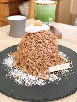 Chestnut Mont Blanc looks attractive. After the sweet chestnut puree on the surface, there are also large creamy Daifuku ice cream inside. Not only that, there are also waffles. This dessert is very sincere