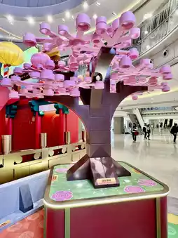The 4m high giant "MCP Lucky Bouncy Stand", the fat lucky cat personally sits in the "Cat Fat House Running Master" - the "Good Luck Wish Pond" under the giant 3.5m high LEGO®️ peach tree - the shape is quite interesting and cute.