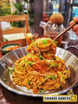 🥘 The must-try "Signature Spanish Seafood Fried Rice" for Spanish cuisine, the rice is slow-cooked with fish soup until 90% cooked, every bite is very rich and delicious. The salmon roe was bursting with mussels, squid rings, tiger prawns, and the usual rare Okinawa sea grapes.